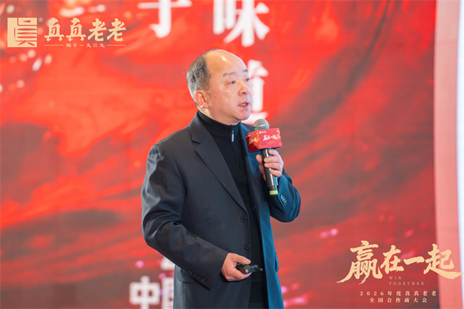 紧随其后,大会进入了核心战略发布环节。嘉兴市真真老老食品有限公司董事长邵建国先生发布《共筑新局,赢定未来——2026年公司战略与共赢蓝图》。蓝图深刻阐释了“变与不变”的发展逻辑:在坚守传统技艺与食品本真、筑牢“嘉兴粽子”风味根基的同时,公司将积极推动产品矩阵的动态迭代与品牌从“节庆符号”向“日常陪伴”的战略转型。邵建国重点阐述“粽子的两次新鲜革命”,核心是定义“新鲜”和“鲜美”新标准,通过“一次蒸煮工艺”、“熟米粽工艺”保证粽子的原汁原味,并缩短产品周期。同时强调真真老老将持续为合作伙伴全方位赋能,通过提供更具竞争力的产品、高效的供应链、创新的市场策略及贴心的服务,构建持久稳固的价值共同体,携手让历经岁月沉淀的“老味道”焕发“新魅力”,使“嘉兴粽子·真老味道”走进更广阔的市场,共赢灿烂未来。